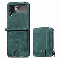 Luxus Leder Hülle Handyhülle und Kunststoff Schutzhülle Hartschalen Tasche S06 für Samsung Galaxy Z Flip4 5G Grün