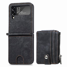 Luxus Leder Hülle Handyhülle und Kunststoff Schutzhülle Hartschalen Tasche S06 für Samsung Galaxy Z Flip4 5G Schwarz