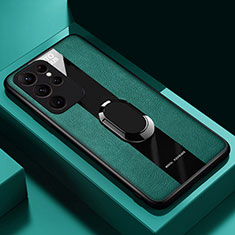 Silikon Hülle Handyhülle Gummi Schutzhülle Flexible Leder Tasche mit Magnetisch Fingerring Ständer S04 für Samsung Galaxy S21 Ultra 5G Grün